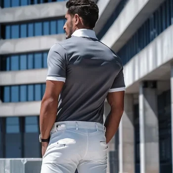 Men’s Polo Business Polo Business Casual Lapel Classic Short Sleeve Color Block Patchwork Embroidered Summer Spring & Fall Sillver Gray Polo