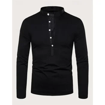 Men’s Golf Shirt Knit Polo Street Casual Polo Collar Classic Long Sleeve Streetwear Basic Solid Color Plain Button Front Spring Fall Regular Fit Dark Khaki White Pink Red Navy Blue Mint Green Golf
