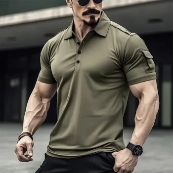 Men’s Golf Shirt Golf Polo Work Casual Lapel Short Sleeve Basic Modern Plain Button Front Pocket Spring & Summer Regular Fit Wine Black White Royal Blue Dark Blue Dark Gray Golf Shirt