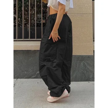 Women’s Cargo Pants Solid Colored Full Length Mid Rise Comfort Cargo Casual Daily Wear Black White XS S All Seasons