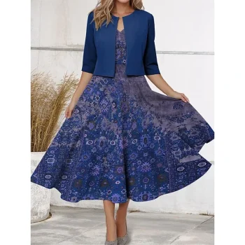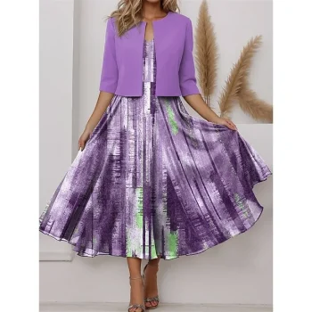 Women’s Two Piece Dress Set Casual Dress Chiffon Dress Outdoor Holiday Vintage Ethnic Print Midi Dress V Neck Half Sleeve Floral Tribal Regular Fit Wine Navy Blue Purple Spring S M L XL XXL