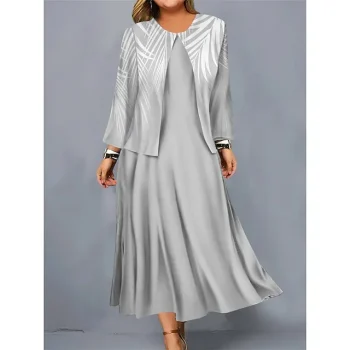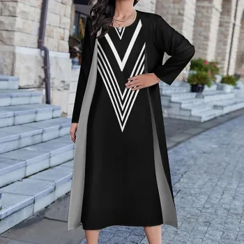 Women’s Dress Set Two Piece Dress Long Dress Maxi Dress Black and white stripes Long Sleeve Color Block Print Winter Fall Crew Neck Vacation Winter Dress Weekend Fall Dress Loose Fit S M L XL
