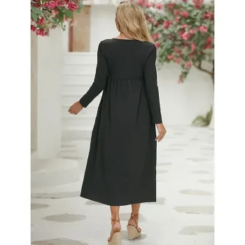Women’s Casual Dress Wrap Dress Plain Dress Long Dress Maxi Dress Pleated Outdoor Street Daily Fashion Streetwear Shirt Collar Long Sleeve Regular Fit Black Brown Apricot Color S M L XL XXL Size