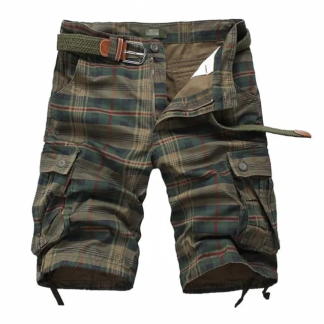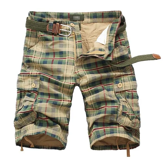 Men's Cargo Shorts Hiking Shorts Drawstring Elastic Waist Multi Pocket Lattice Breathable Quick Dry Short Daily Sports Streetwear Sporty ArmyGreen Yellow Micro-elastic