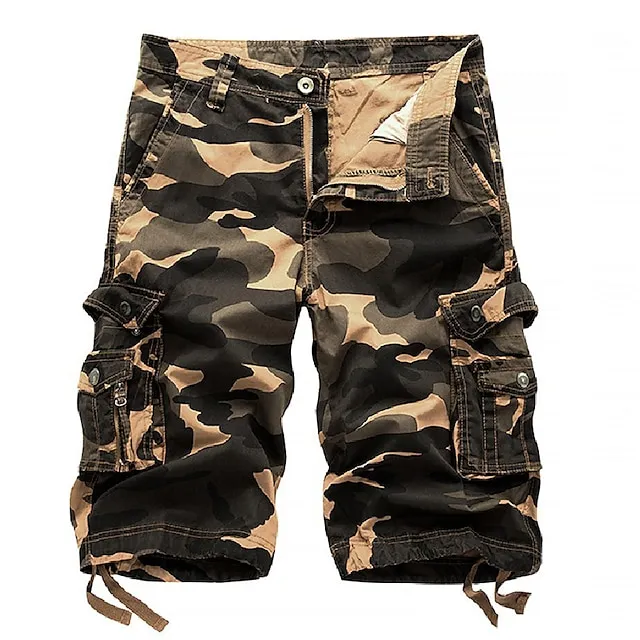 Men’s Cargo Shorts Hiking Shorts Leg Drawstring Multi Pocket Multiple Pockets Camouflage Breathable Outdoor Knee Length Casual Daily Streetwear Stylish Black Green Camouflage Blue Micro-elastic