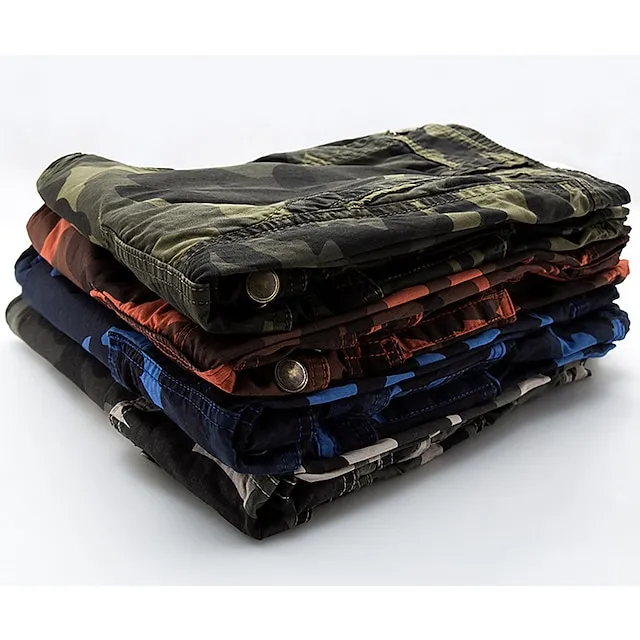 Men's Cargo Shorts Hiking Shorts Leg Drawstring Multi Pocket Multiple Pockets Camouflage Breathable Outdoor Knee Length Casual Daily Streetwear Stylish Black Green Camouflage Blue Micro-elastic
