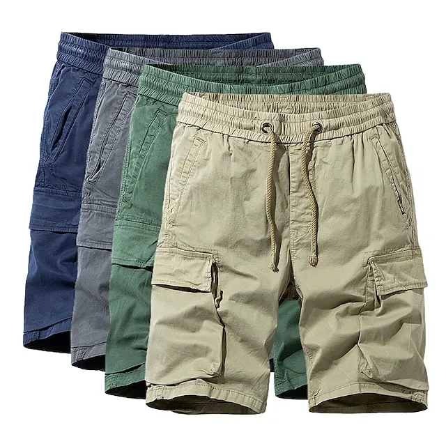 Men's Cargo Shorts Hiking Shorts Military Summer Outdoor Regular Fit 10“ Ripstop Breathable Quick Dry Multi Pockets Shorts Drawstring Elastic Waist Dark Grey Army Green Cotton Fishing Climbing