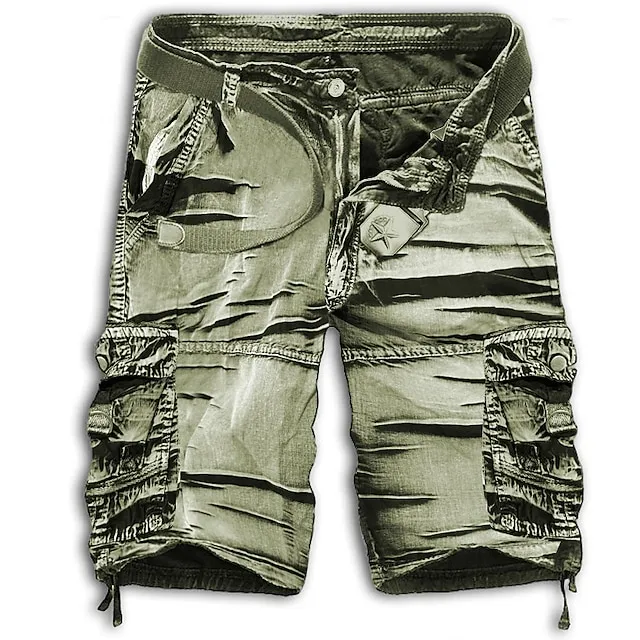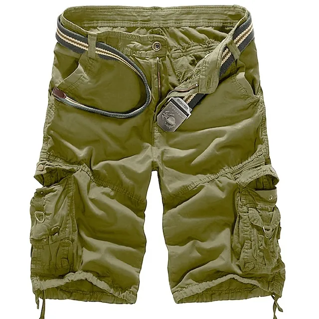 Men’s Cargo Shorts Shorts Hiking Shorts Leg Drawstring 6 Pocket Plain Comfort Lightweight Outdoor Daily Going out Cotton Blend Fashion Streetwear Black Army Green