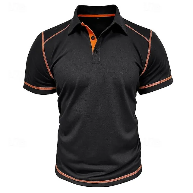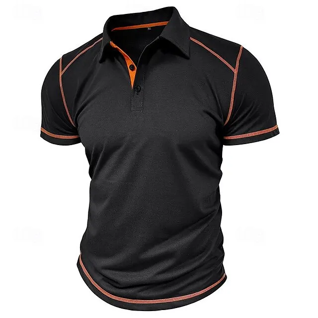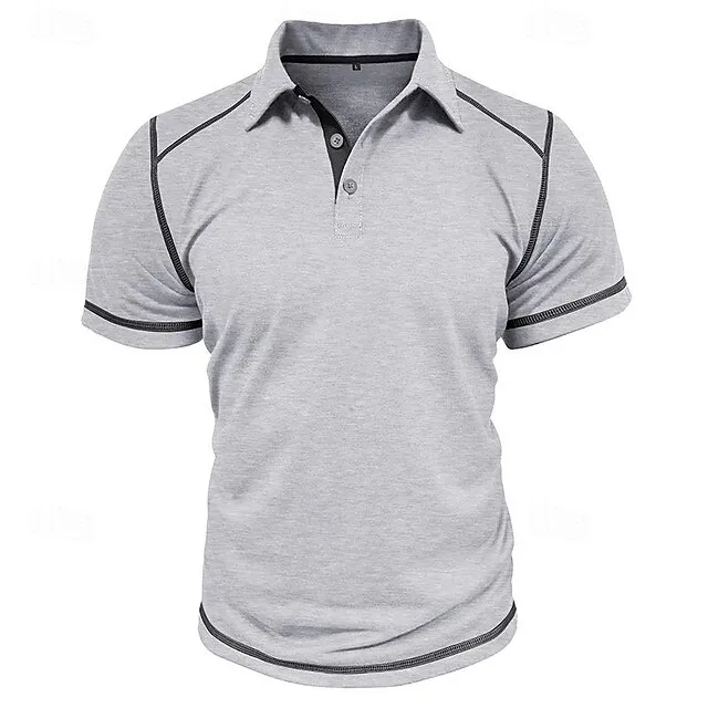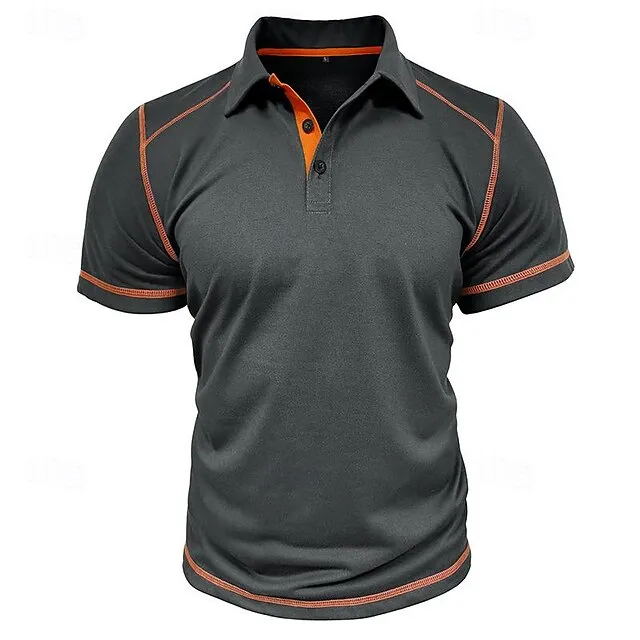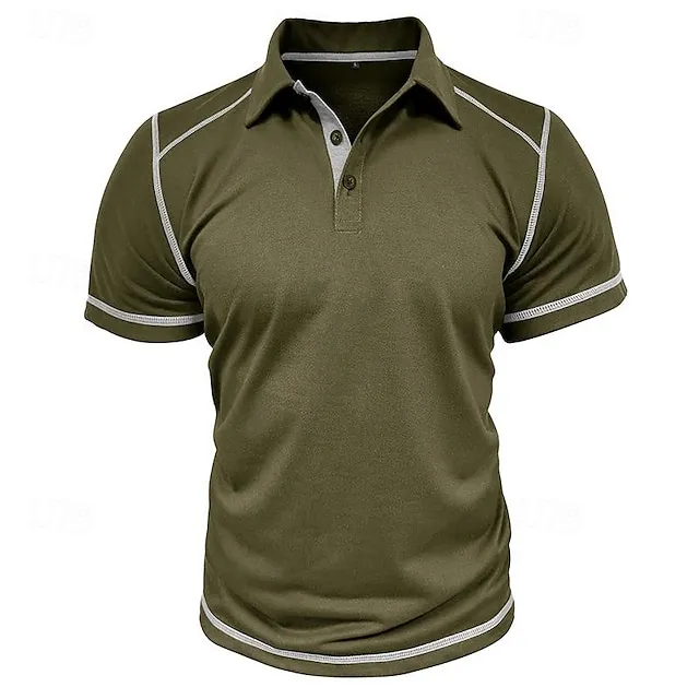 Men’s Golf Shirt Golf Polo Work Casual Lapel Short Sleeve Basic Modern Color Block Patchwork Button Spring & Summer Regular Fit Black Army Green Royal Blue Khaki Light Grey Dark Gray Golf Shirt