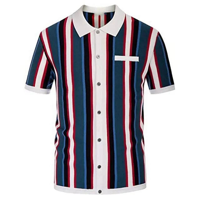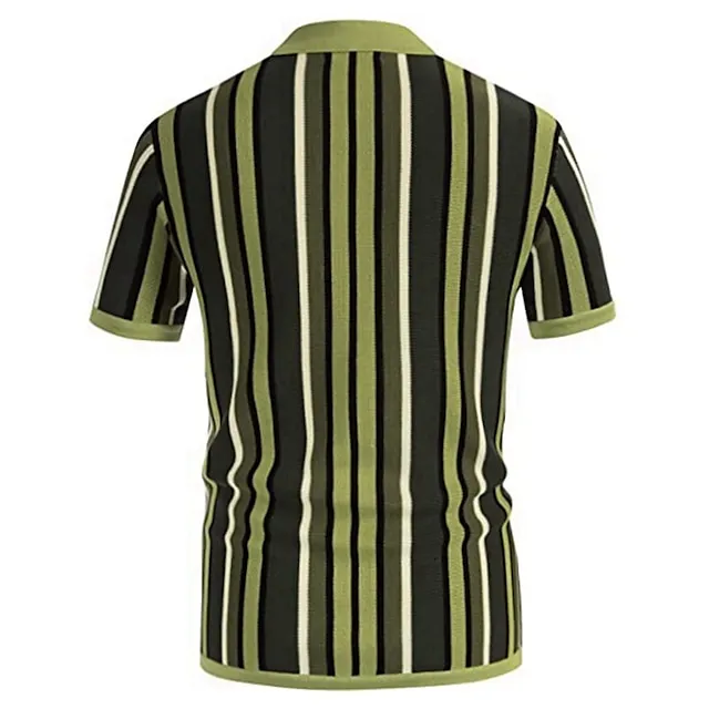 Men's Knit Polo Sweater Polo Shirt Casual Daily Turndown Button Short Sleeve Fashion Chunky Striped Button Front Summer Spring Fall Regular Fit Wine Blue Green Knit Polo Sweater