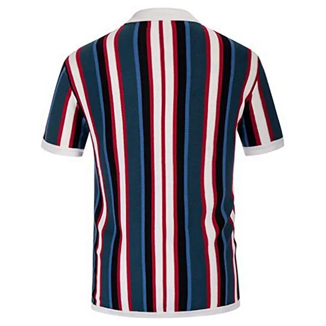 Men’s Knit Polo Sweater Polo Shirt Casual Daily Turndown Button Short Sleeve Fashion Chunky Striped Button Front Summer Spring Fall Regular Fit Wine Blue Green Knit Polo Sweater