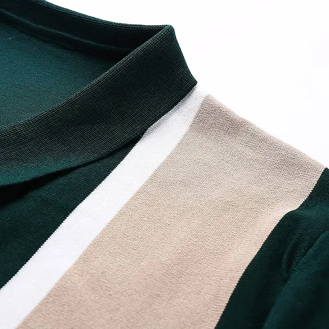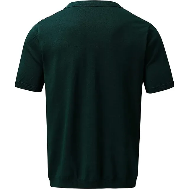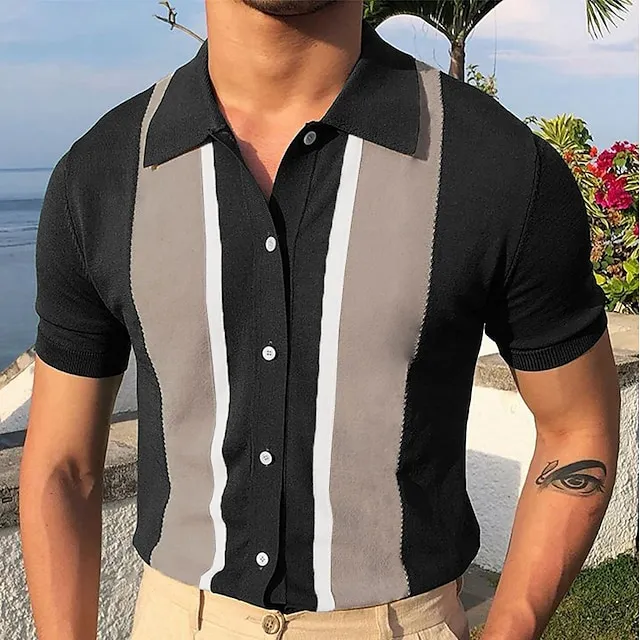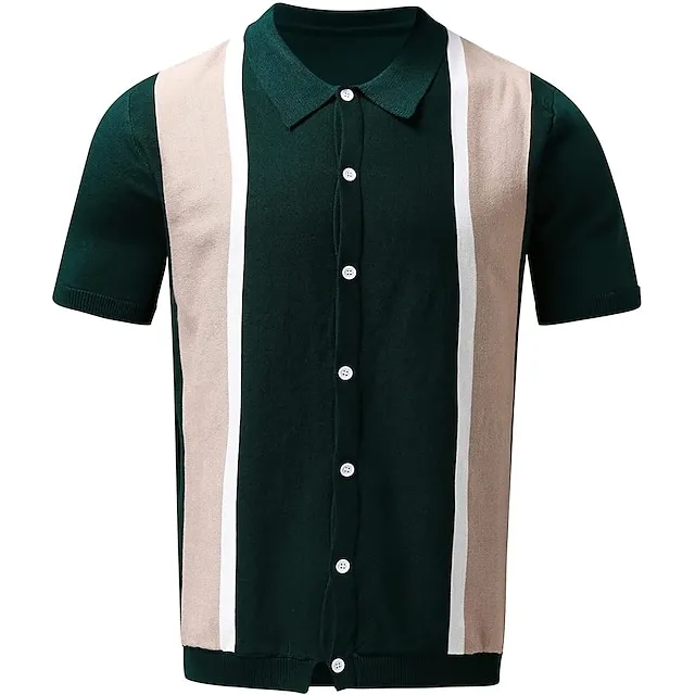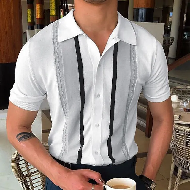 Men’s Knit Polo Sweater Polo Shirt Outdoor Street Turndown Button Short Sleeve Casual Striped Button Front Summer Spring Fall Regular Fit Black White Ivory Blue Green Black White Knit Polo Sweater