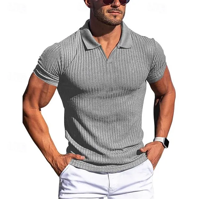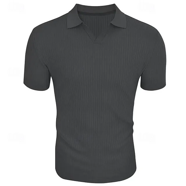 Men’s Polo Shirt Golf Shirt Work Casual Lapel Short Sleeve Basic Modern Plain Vertical Stripes Classic Spring & Summer Regular Fit Black White Red Navy Blue Dark Green Light Grey Polo Shirt
