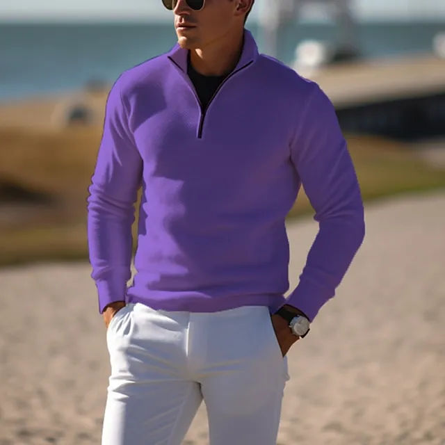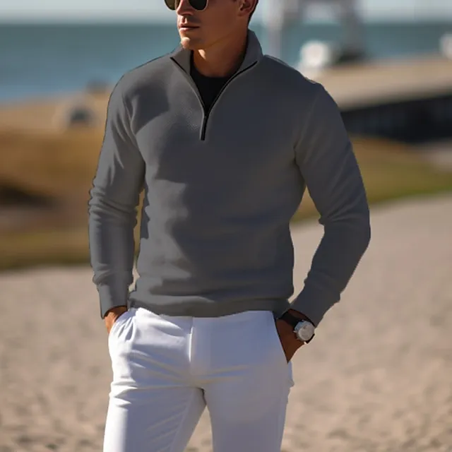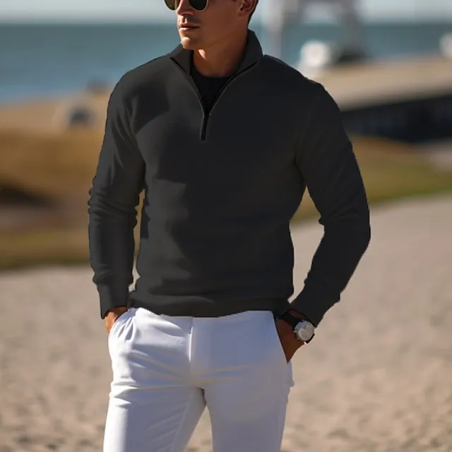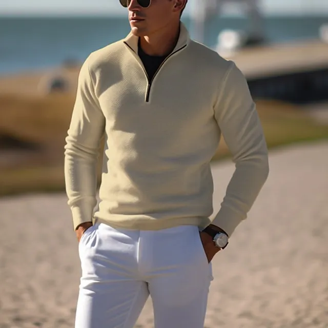 Men's Pullover Sweater Jumper Knit Sweater Ribbed Knit Regular Knitted Plain Quarter Zip Keep Warm Modern Contemporary Daily Wear Going out Clothing Apparel Fall Winter Black White S M L