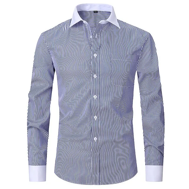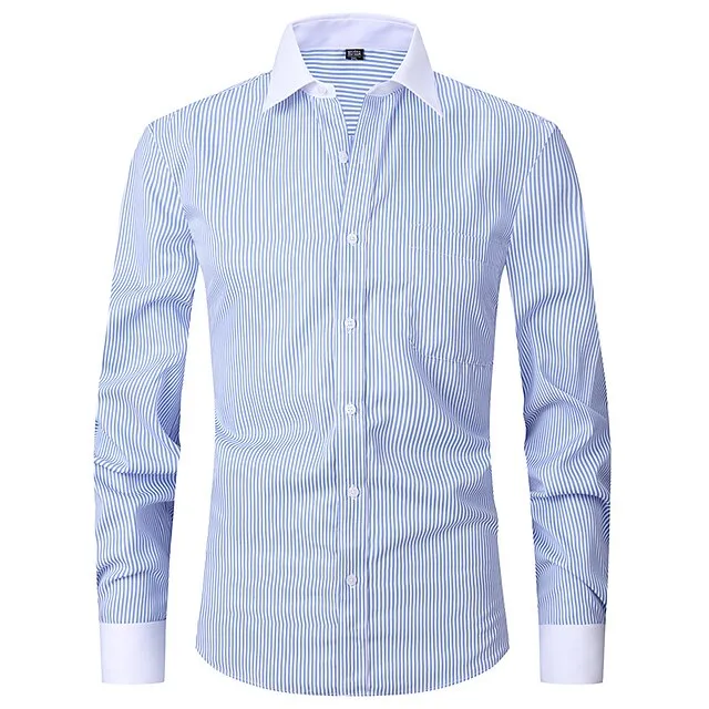 Men's Shirt Dress Shirt Button Down Shirt Light Blue Black Blue Long Sleeve Stripes Lapel Spring & Fall Office & Career Wedding Party Clothing Apparel Front Pocket
