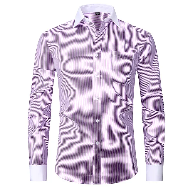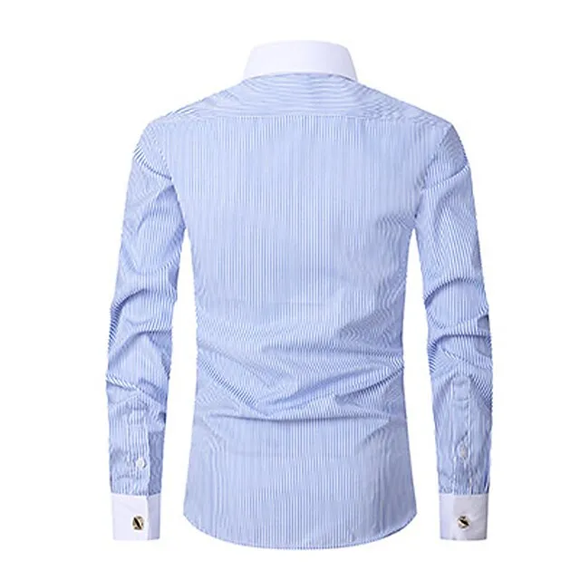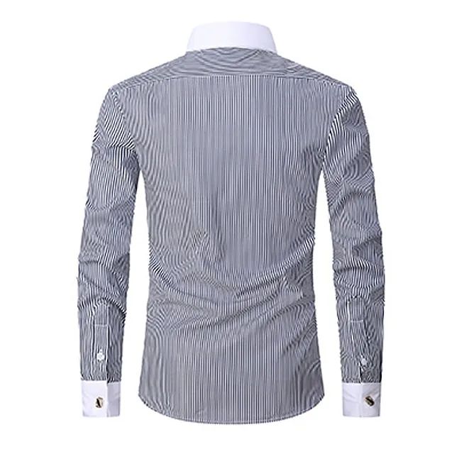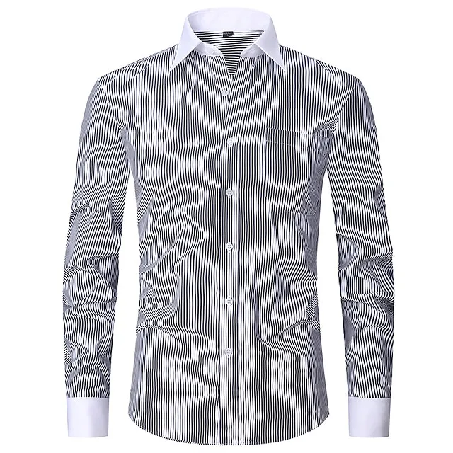 Men’s Shirt Dress Shirt Button Down Shirt Light Blue Black Blue Long Sleeve Stripes Lapel Spring & Fall Office & Career Wedding Party Clothing Apparel Front Pocket