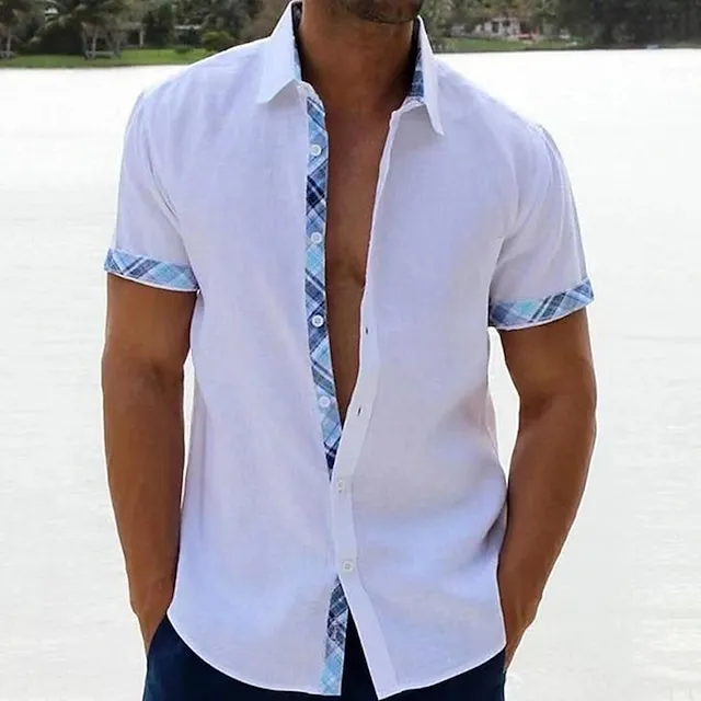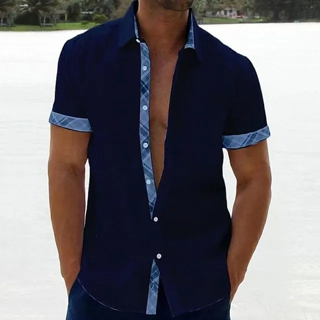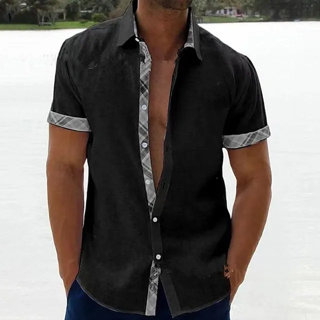 Men’s Summer Shirt Beach Shirt Black White Blue Short Sleeve Plain Lapel Spring & Summer Hawaiian Holiday Clothing Apparel Pocket