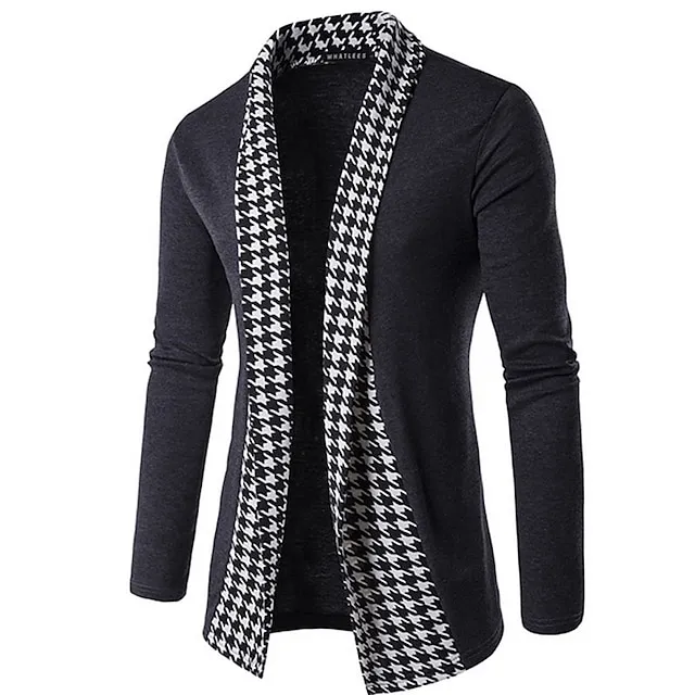 Men’s Sweater Cardigan Knit Regular Check Pattern Knitted Houndstooth Halter Neck Vintage Style Soft Daily Weekend Clothing Apparel Winter Fall Black Dark Gray M L XL