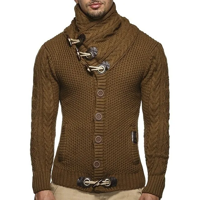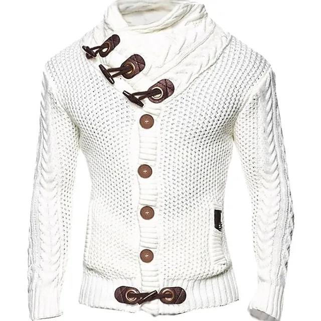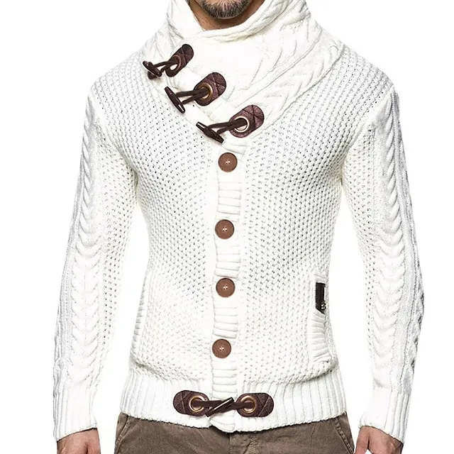 Men’s Sweater Cardigan Turtleneck Sweater Ribbed Knit Scarf Striped Turtleneck Stylish Modern Contemporary Dailywear Casual Clothing Apparel Winter Black White S M L