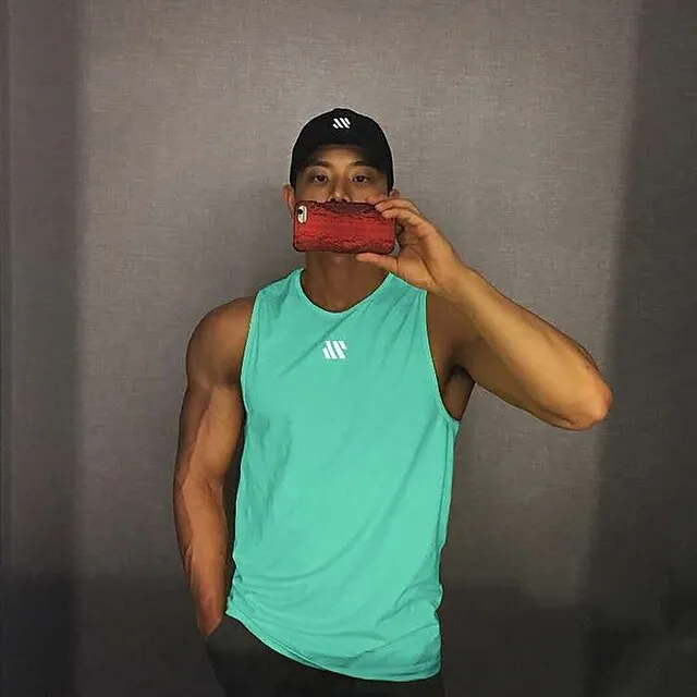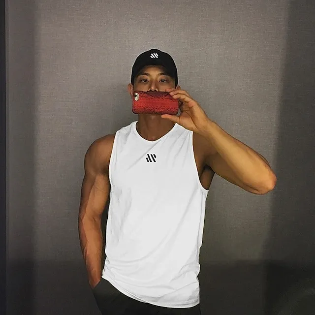 Men's Vest Top Tank Graphic Tee Solid / Plain Color Round Hot Stamping Running Gym Sleeveless Print Clothing Apparel Gymnatics