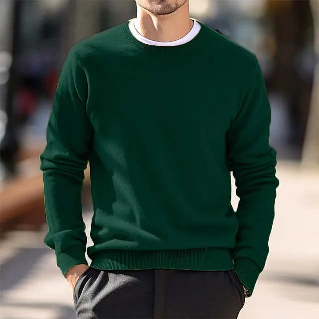 Men’s Wool Sweater Pullover Sweater Jumper Cropped Sweater Ribbed Knit Regular Knitted Plain Crew Neck Modern Contemporary Work Halloween Clothing Apparel Winter Black Red S M L