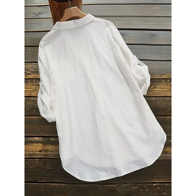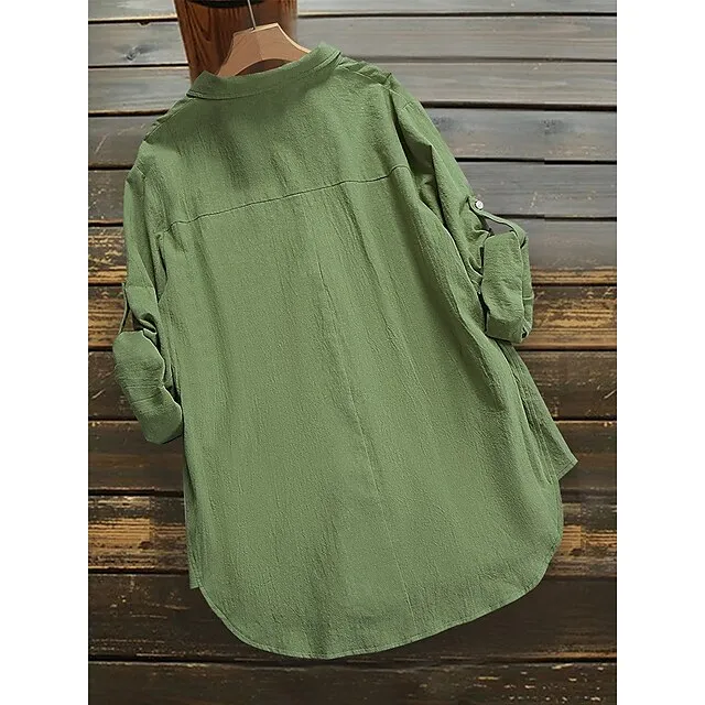 Shirt Blouse Women's Black-1 White Green Solid Colored Button Pocket Daily Daily Shirt Collar Regular Fit XL