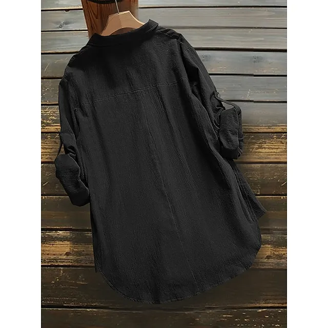 Shirt Blouse Women’s Black-1 White Green Solid Colored Button Pocket Daily Daily Shirt Collar Regular Fit XL
