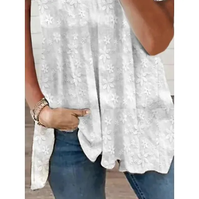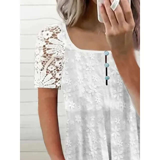 Shirt Blouse Women’s White Floral Lace Button Street Daily Fashion Square Neck S