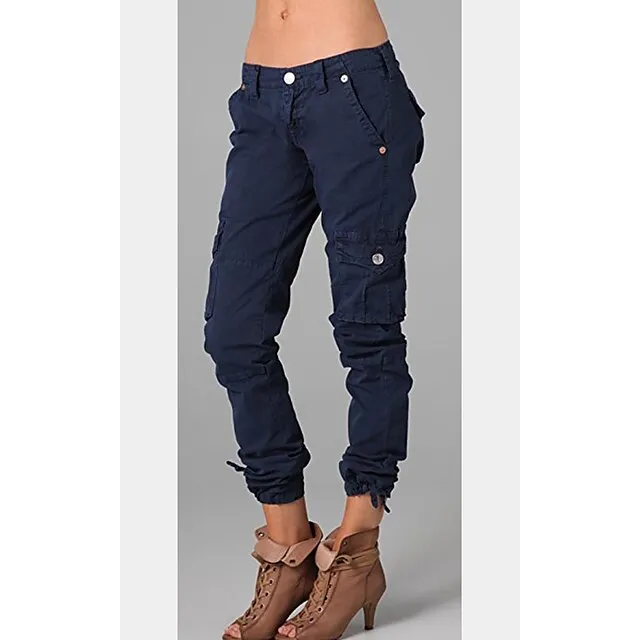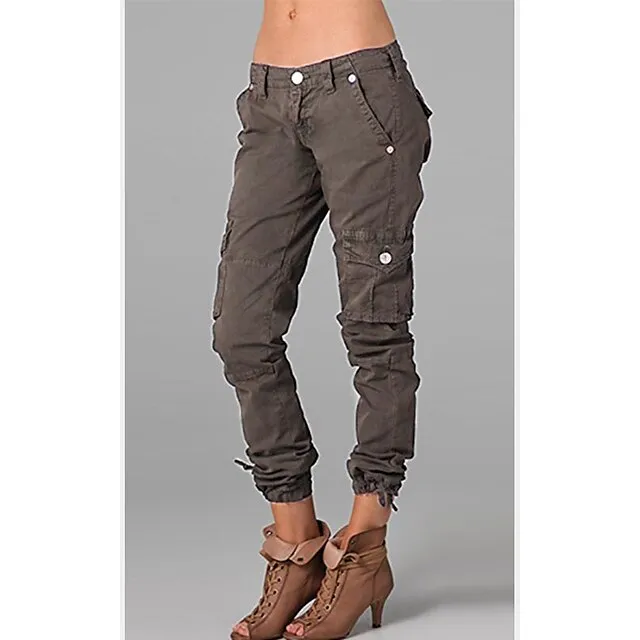 Women’s Cargo Pants Slacks 100% Cotton Solid Colored Pocket Full Length Mid Waist Cargo Chino Casual Daily Wear Grey Black XS S Summer Spring & Fall