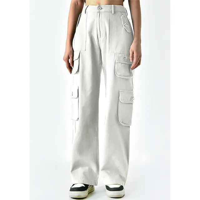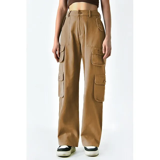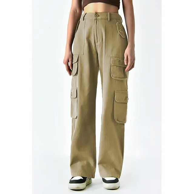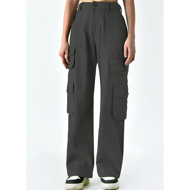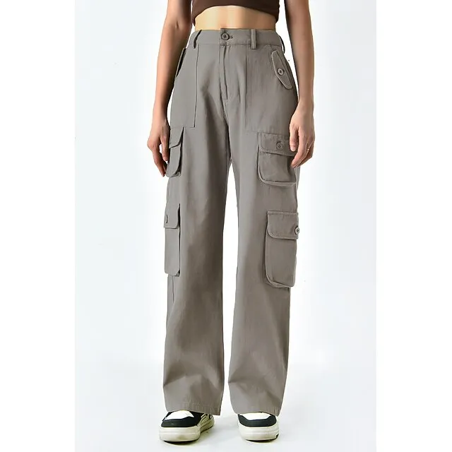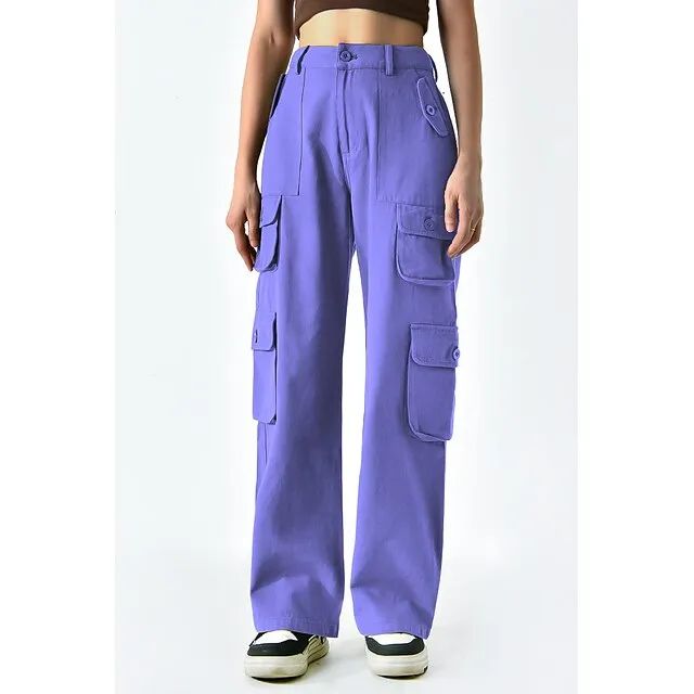Women’s Cargo Pants Solid Colored Full Length Mid Rise Comfort Cargo Casual Daily Wear Violet Grey XS S All Seasons