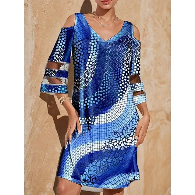 Women’s Casual Dress Slip Dress Geometric Color Block Print Mesh V Neck Mini Dress Streetwear Street Holiday Long Sleeve Loose Fit Blue Summer Spring S M L XL XXL