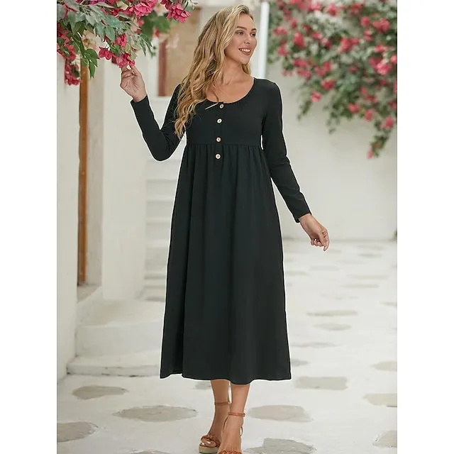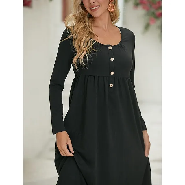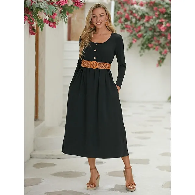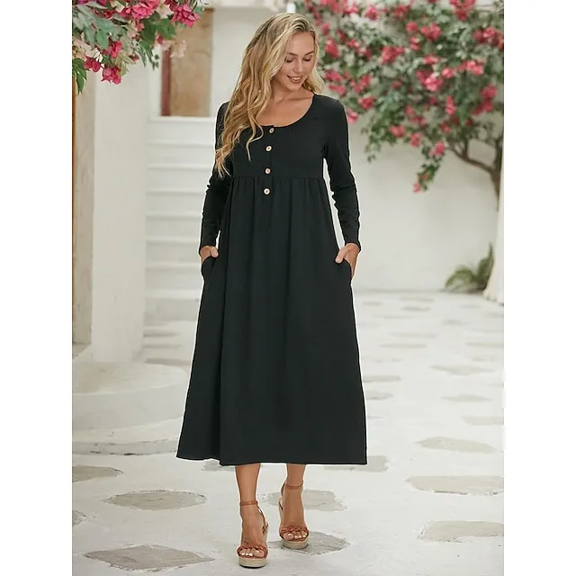 Women's Casual T Shirt Midi Dress Tee Pure Color Ruched Pocket V Neck Dress Fashion Outdoor Daily Long Sleeve Loose Fit Summer Spring S M L XL XXL