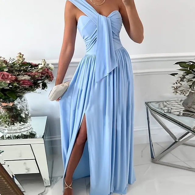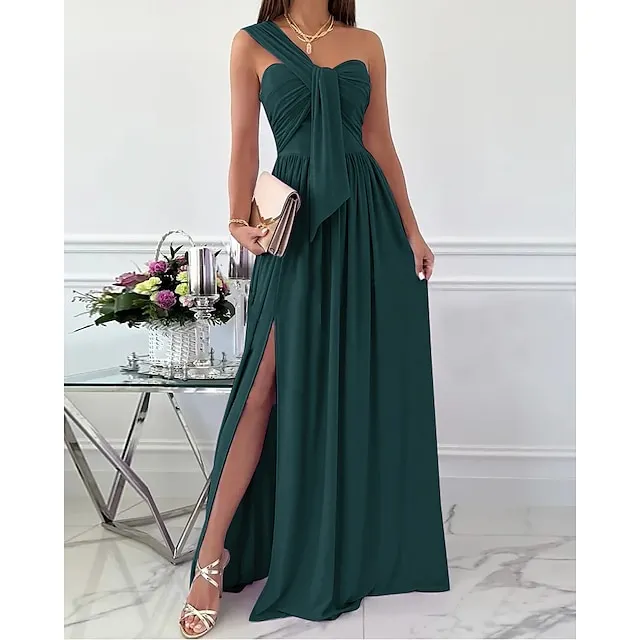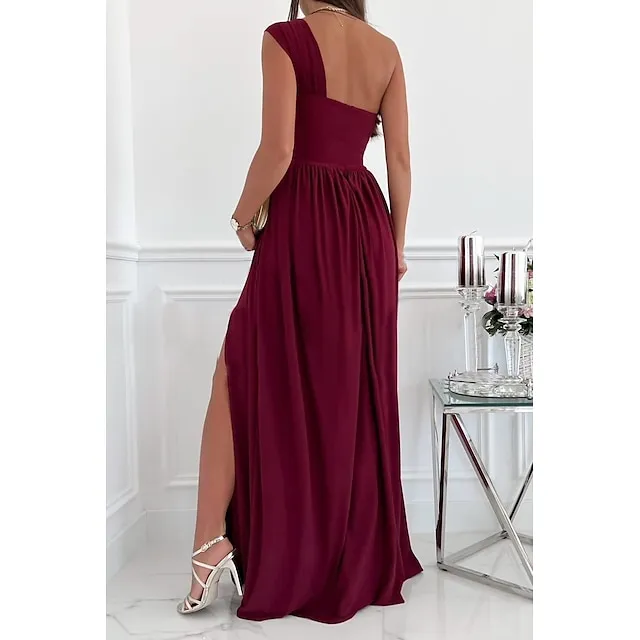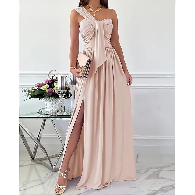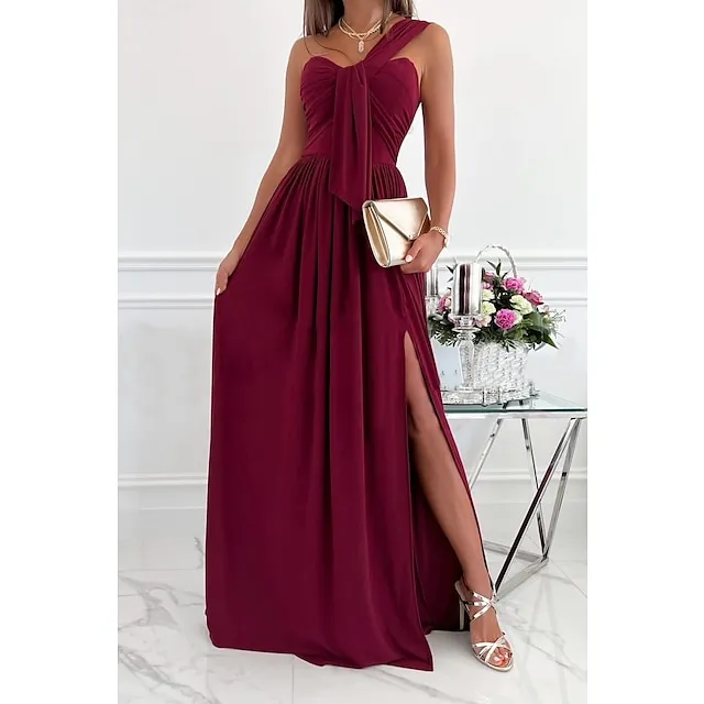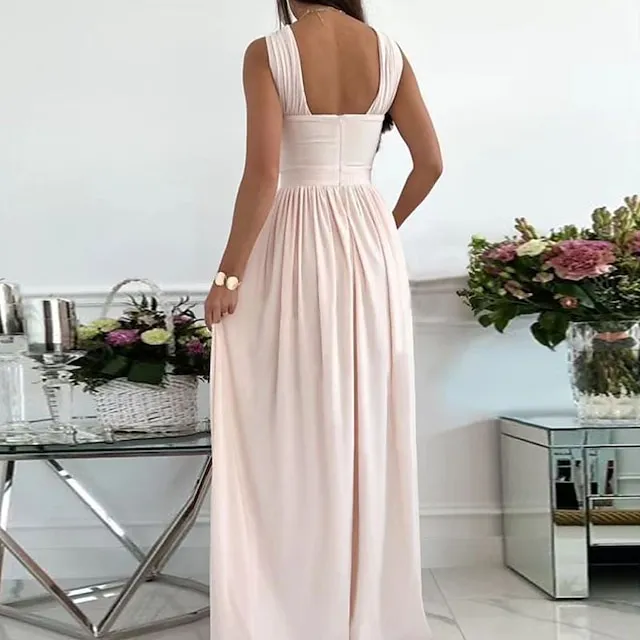 Women‘s Formal Party Dress Wedding Guest Dress Long Dress Maxi Dress Light Pink Black Red Sleeveless Pure Color Ruched Spring Summer Halter S M L XL XXL