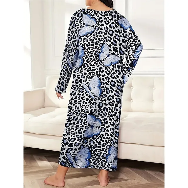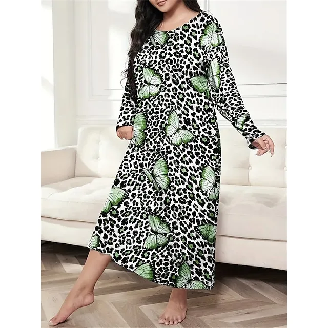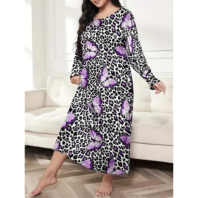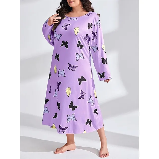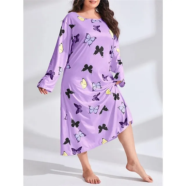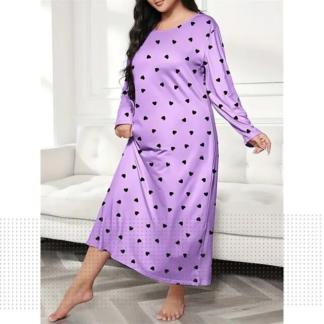 Women’s Plus Size Pajamas Sleepwear Nightshirt Sleep Shirt Heart Butterfly Fashion Casual Home Bed Polyester Comfort Breathable Crew Neck Long Sleeve Spring Purple black Lotus Pink