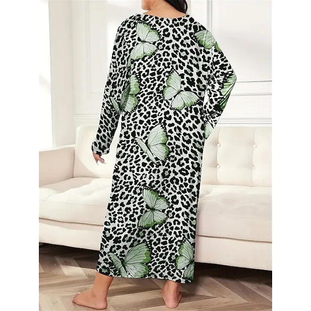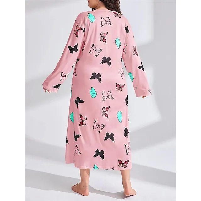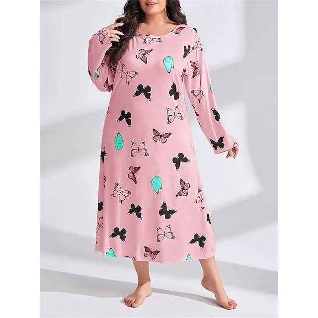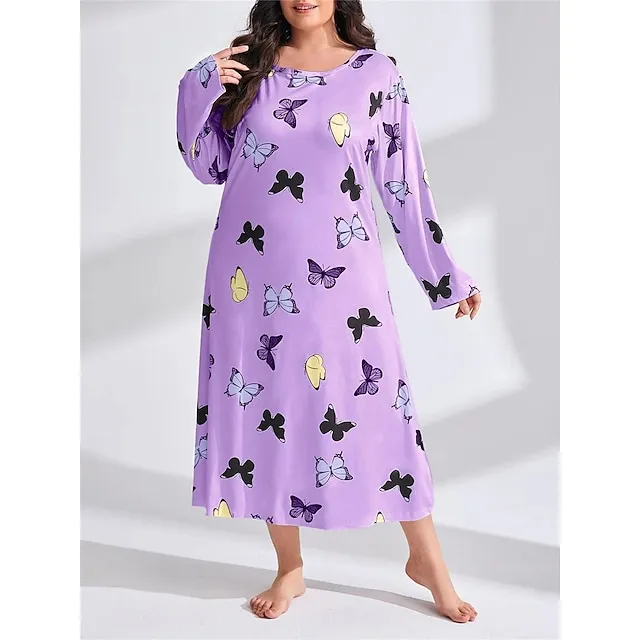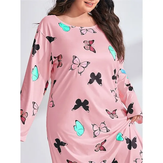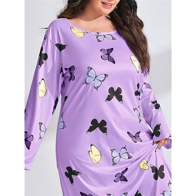 Women's Plus Size Pajamas Sleepwear Nightshirt Sleep Shirt Heart Butterfly Fashion Casual Home Bed Polyester Comfort Breathable Crew Neck Long Sleeve Spring Purple black Lotus Pink