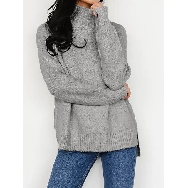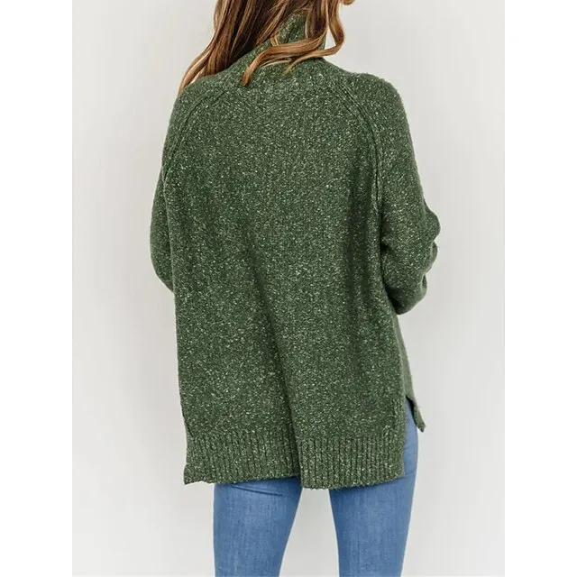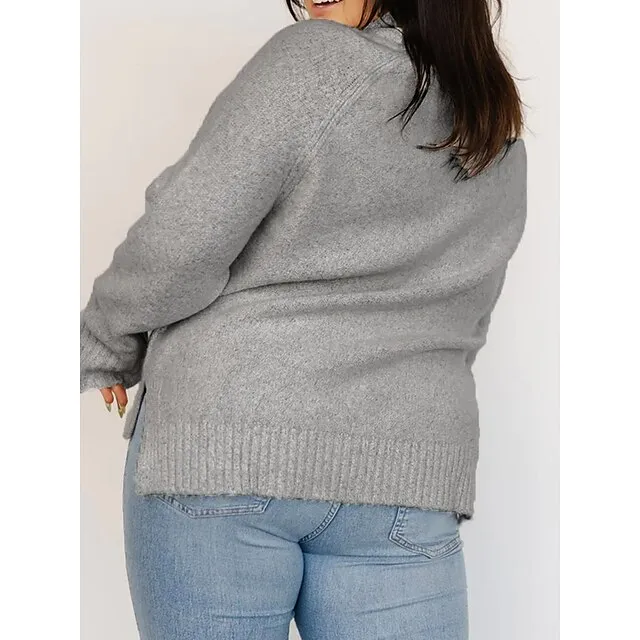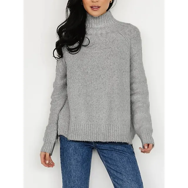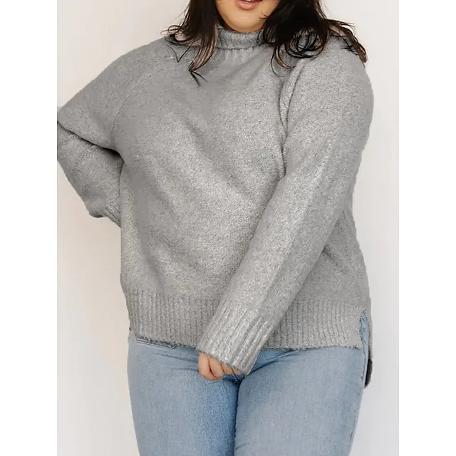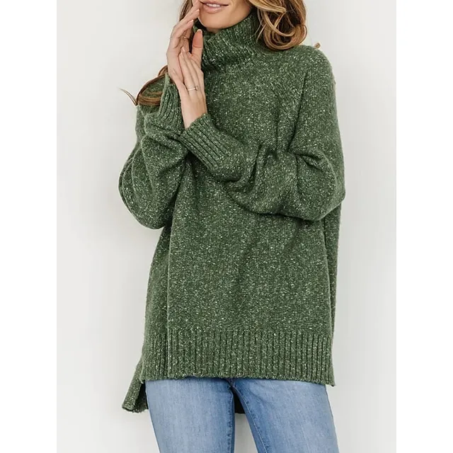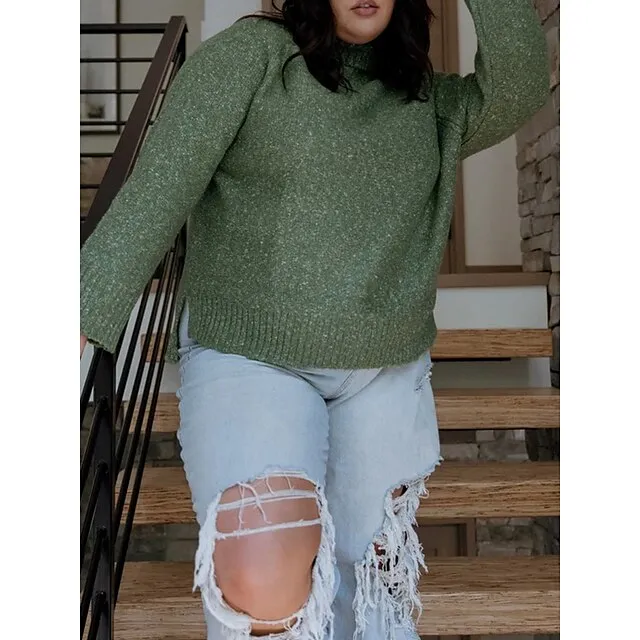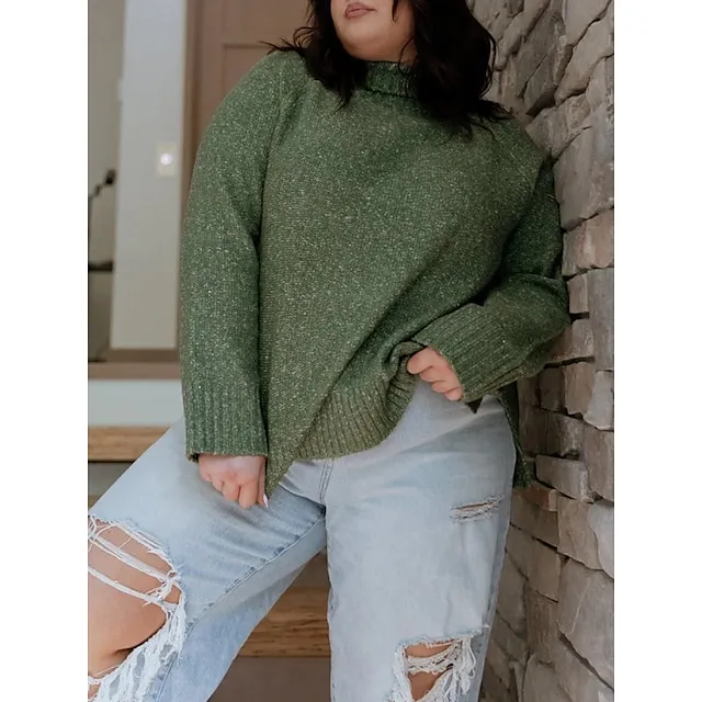 Women’s Plus Size Pullover Sweater Jumper Turtleneck Ribbed Knit Polyester Split Fall Winter Regular Outdoor Going out Weekend Stylish Plus Size Casual Long Sleeve Pure Color Green Gray XS S M