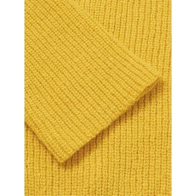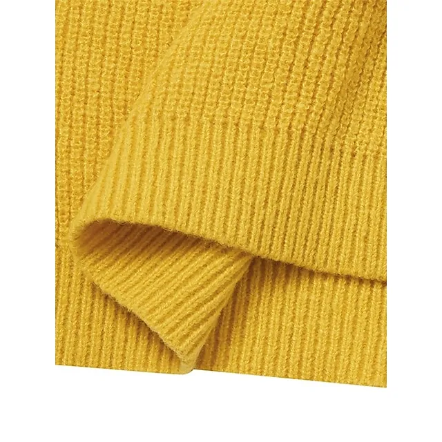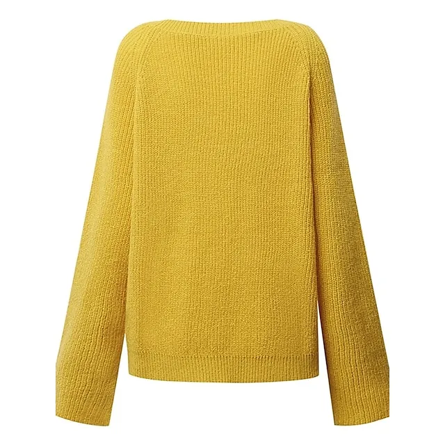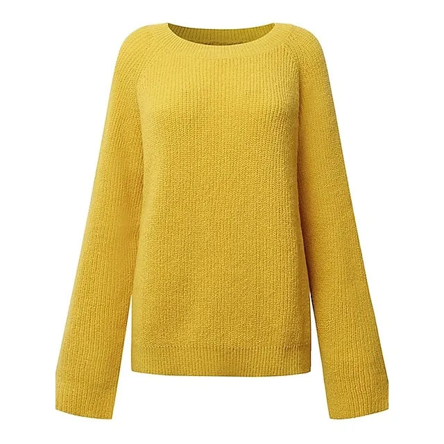Women’s Pullover Sweater Jumper Crew Neck Ribbed Knit Polyester Oversized Fall Winter Regular Daily Going out Weekend Stylish Casual Soft Long Sleeve Solid Color Black Yellow Navy Blue S M L