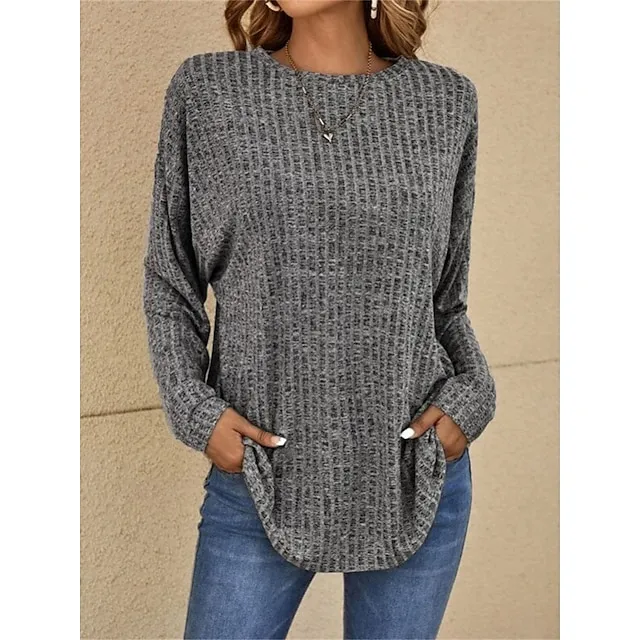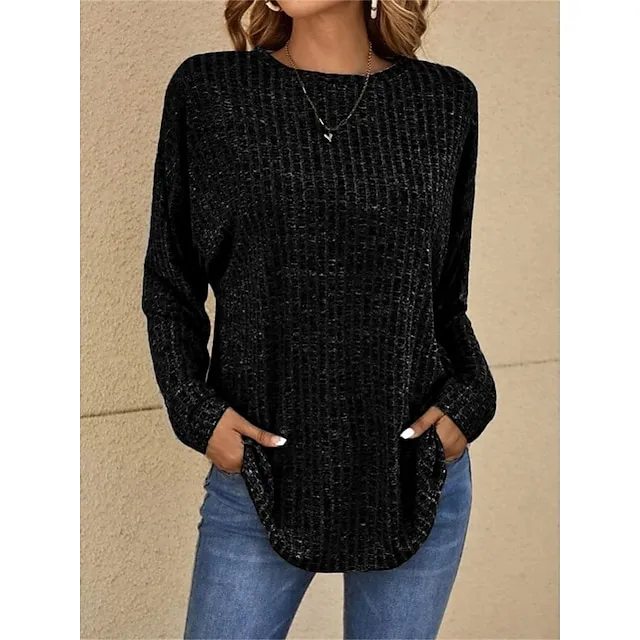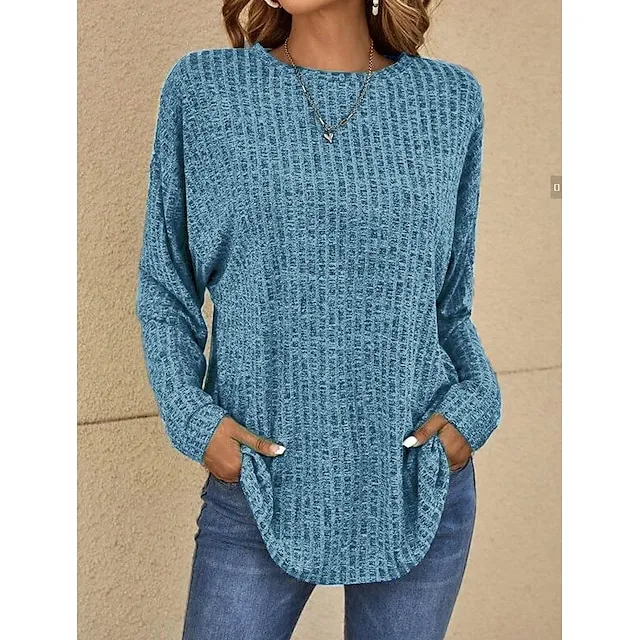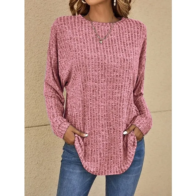 Women’s Pullover Sweater Jumper Crew Neck Ribbed Knit Polyester Oversized Spring Fall Outdoor Valentine’s Day Daily Stylish Casual Soft Long Sleeve Solid Color Black Pink Royal Blue S M L