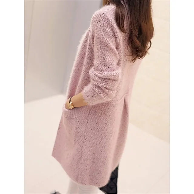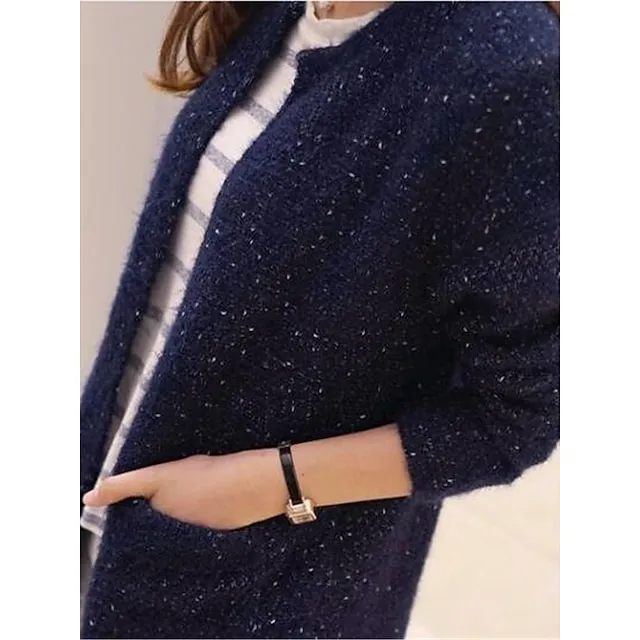 Women's Pullover Sweater Jumper Crew Neck Ribbed Knit Polyester Pocket Fall Winter Valentine's Day Daily Going out Stylish Casual Soft Long Sleeve Solid Color Pink Wine Navy Blue One-Size