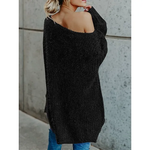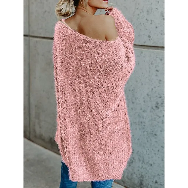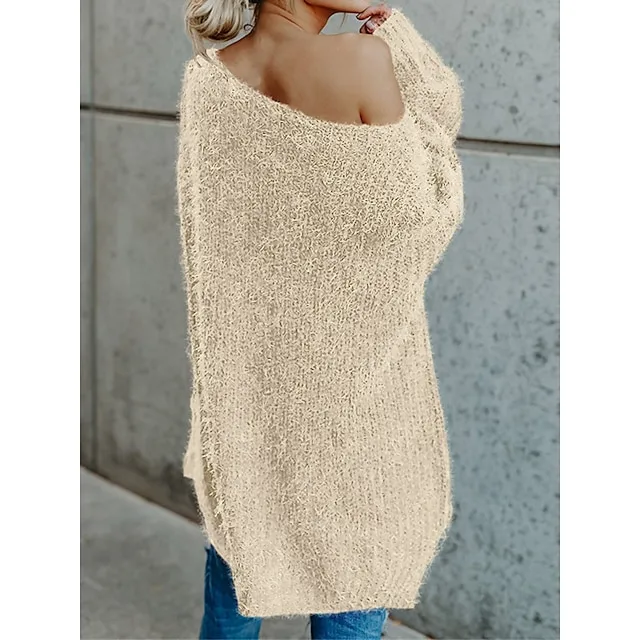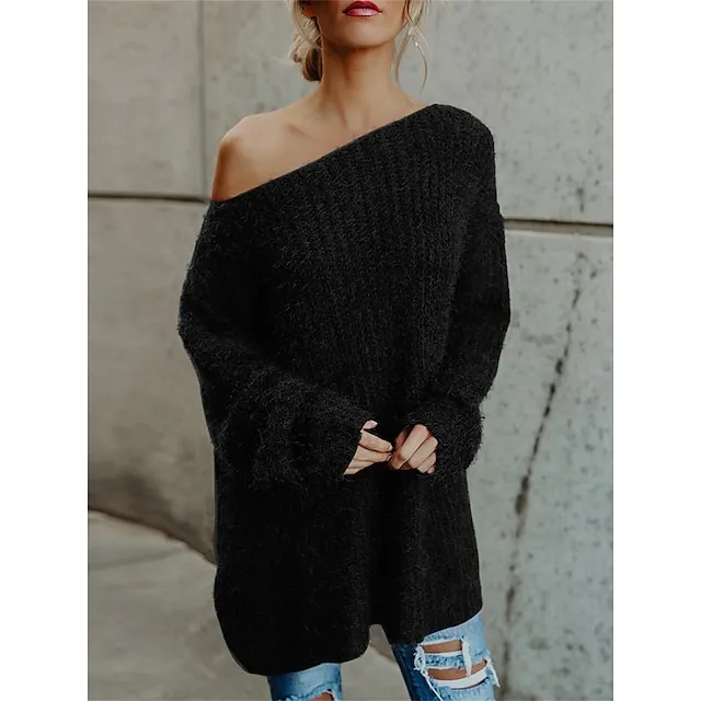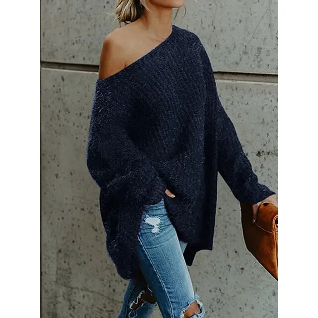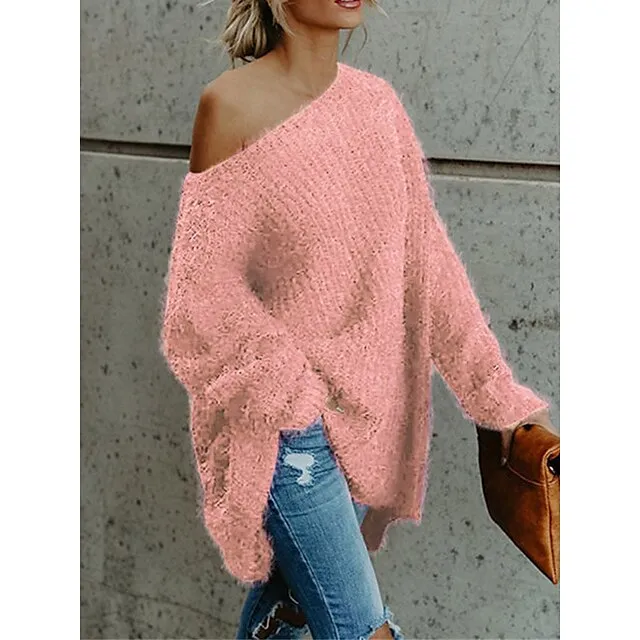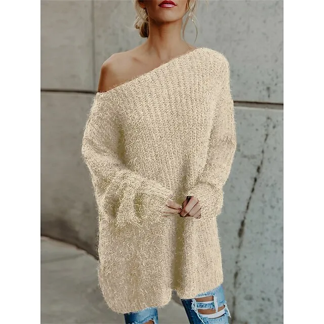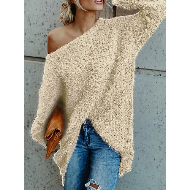 Women’s Pullover Sweater Jumper One Shoulder Ribbed Knit Polyester Cold Shoulder Fall Winter Short Daily Going out Weekend Stylish Casual Soft Long Sleeve Solid Color Pink Navy Blue Beige XS S M