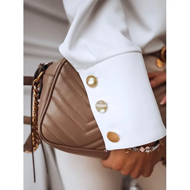 Women’s Shirt Blouse Black White Button Long Sleeve Work Business Standing Collar S