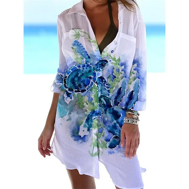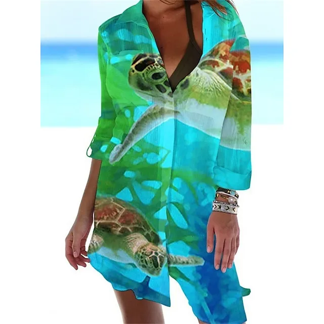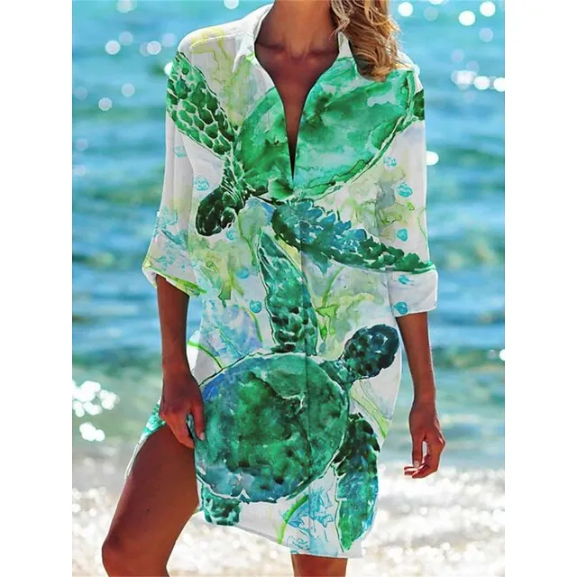 Women’s Shirt Dress Casual Dress Shift Dress Mini Dress Outdoor Daily Date Polyester Fashion Classic Shirt Collar Pocket Print Half Sleeve Summer Spring Loose Fit ArmyGreen White Navy Blue Animal