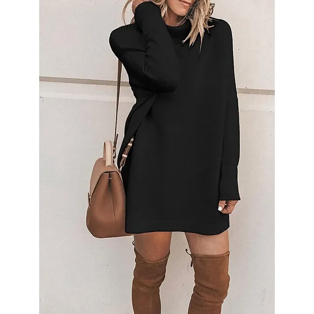 Women's Sweater Dress Pullover Sweater Jumper Turtleneck Ribbed Knit Polyester Oversized Fall Winter Outdoor Daily Holiday Stylish Casual Soft Long Sleeve Solid Color Black White Red S M L