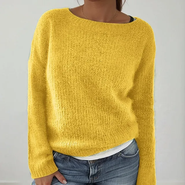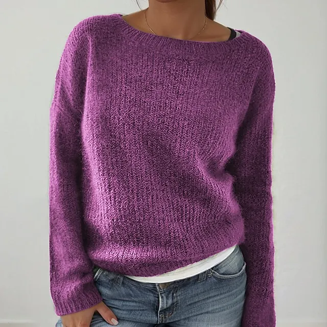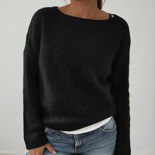 Women's Sweater Pullover Knitted Solid Color Basic Casual Long Sleeve Regular Fit Sweater Cardigans Boat Neck Spring Summer Green Blue Black / Holiday / Going out