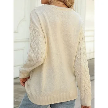 Women’s Crew Neck Cable Pullover Sweater Jumper Knit Acrylic Knitted Fall Winter Regular Outdoor Daily Going out Fashion Casual Soft Long Sleeve Solid Color Wine Navy Blue Beige S M L