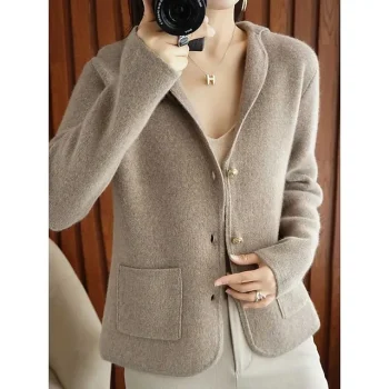 Women’s Cardigan Sweater Hooded Cable Knit Acrylic Button Pocket Fall Winter Long Outdoor Going out Weekend Stylish Casual Soft Long Sleeve Pure Color Red Brown Black Light Green S M L