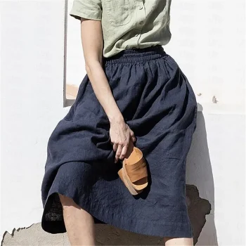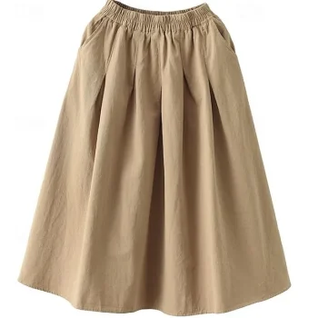 Women’s Skirt Swing Midi Cotton Linen White Yellow Light Green Sky Blue Skirts Summer High Waist Basic Casual Casual Daily Weekend One-Size