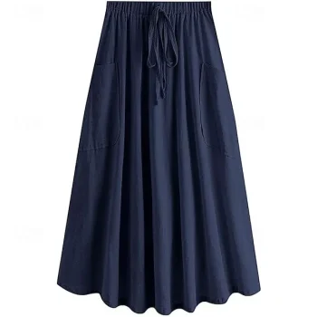 Women’s Swing Skirts Maxi Linen Cotton Blend Black White Yellow Light Green Skirts Daily Casual Office / Career Spring Summer S M L