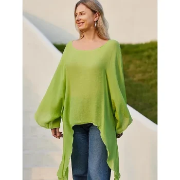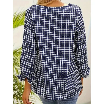 Women’s Plus Size Shirt Plaid Casual Holiday Bell Sleeve Royal Blue Sky Blue Pocket Long Sleeve Fashion Casual V Neck Loose Fit Spring & Fall All Seasons