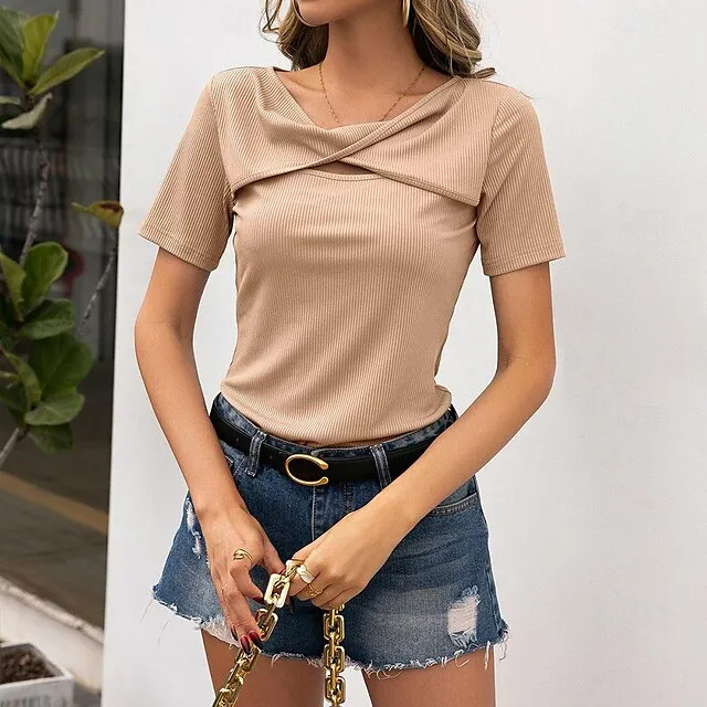 T shirt Tee Women’s Black White Blue Solid Color Cut Out Street Daily Fashion Round Neck S